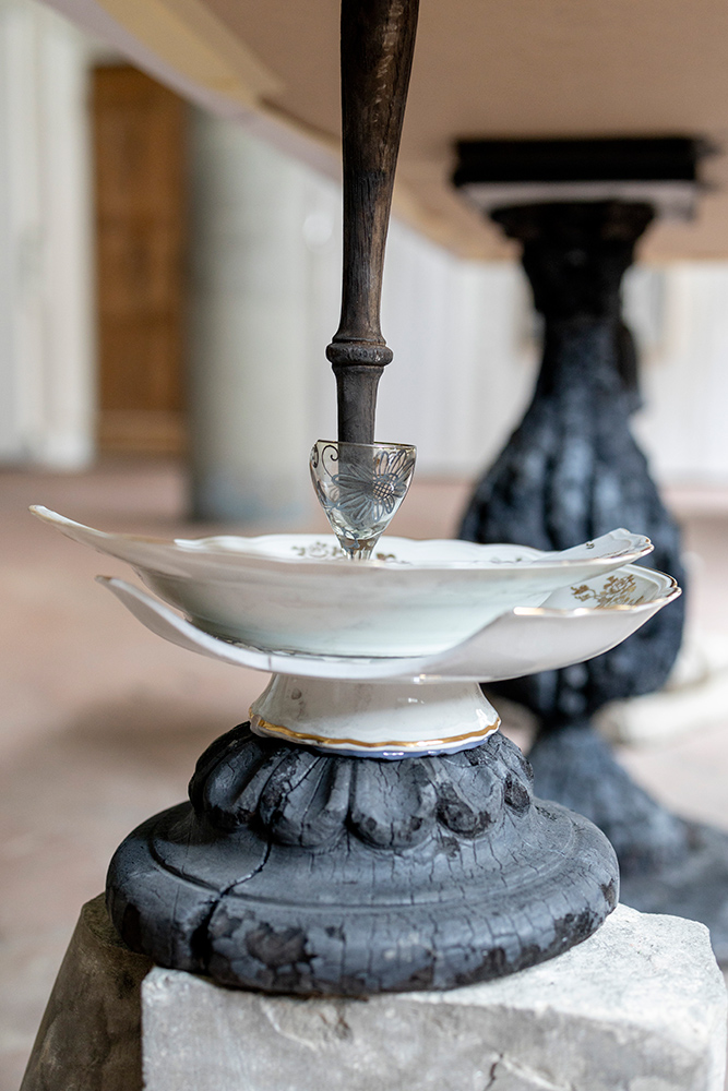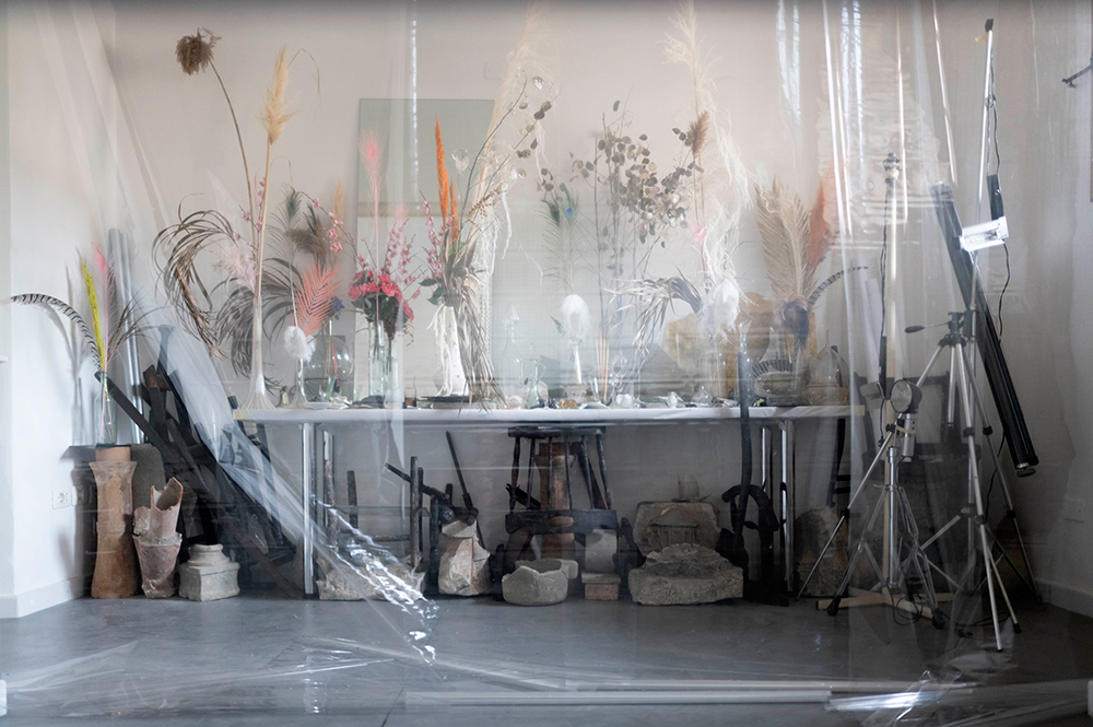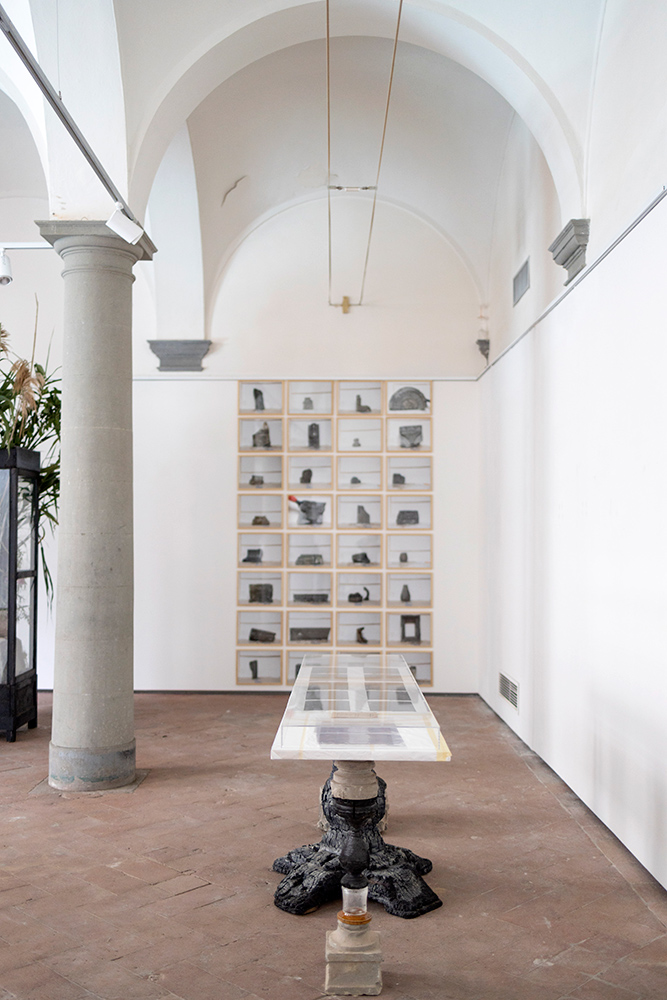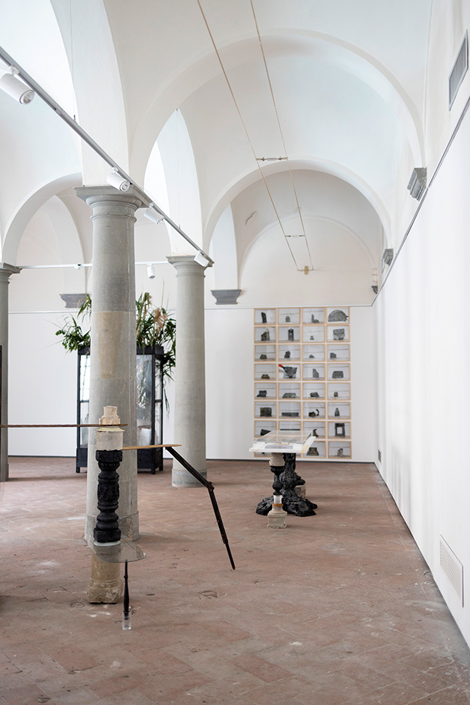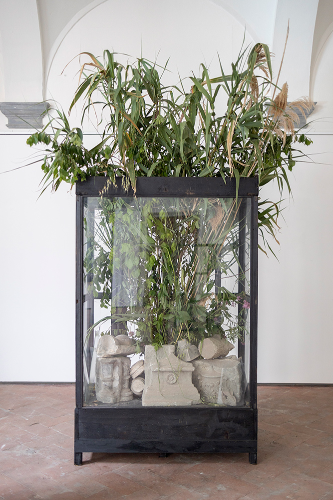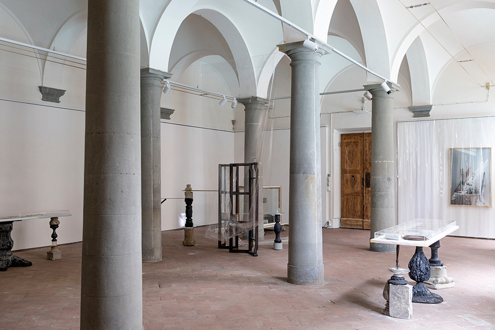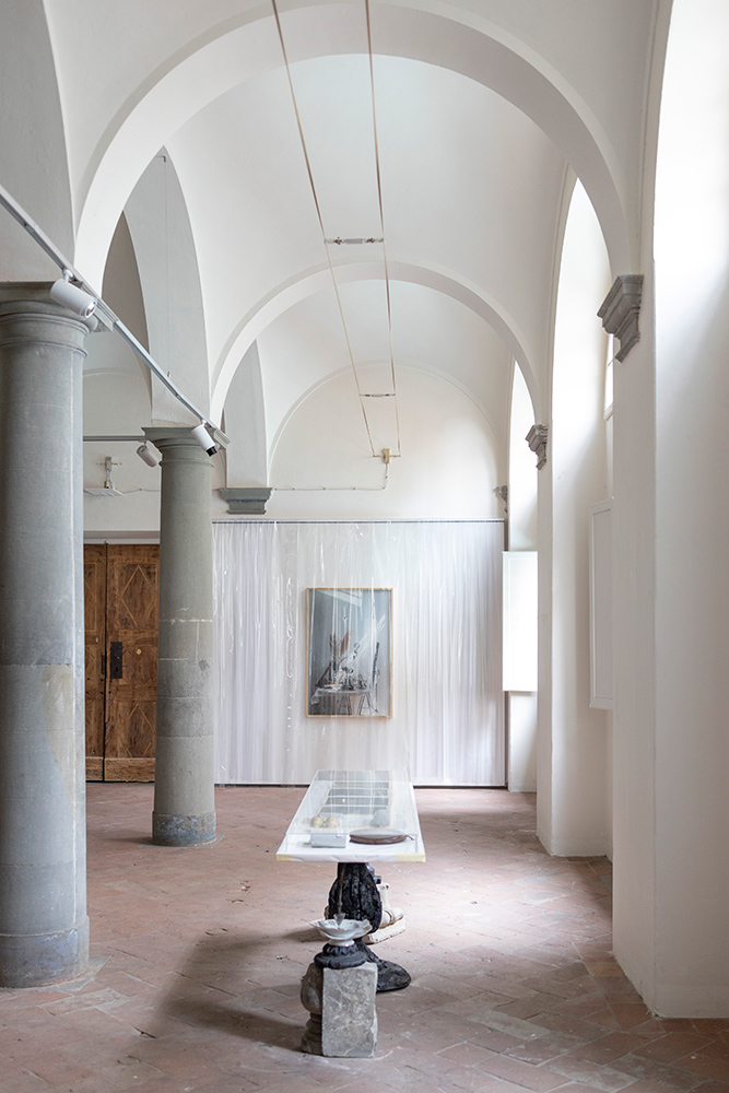 Qui il tema della visione diventa centrale, per raccontare quello che si vive entrando nel deposito e al tempo stesso per evocare la presenza di un oggetto. Quello che viene nascosto, in realtà, risalta perché immaginato, anelato. Il soggetto continua ad esistere, ma celato al nostro sguardo rivela tutto il vuoto che lascia il suo non esserci. Nel caso delle Murate i reperti lapidei sono visibili, ma cambiano di identità, non più riconoscibili come nelle foto stampate e affisse alla parete, ma ibridati con oggetti provenienti dallo studio dell’artista.