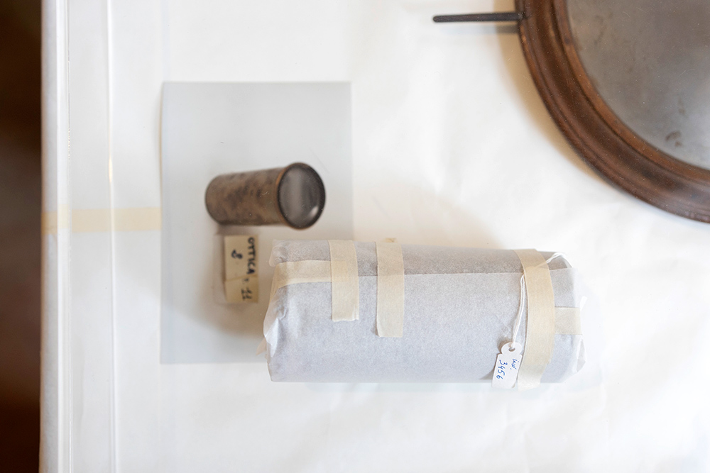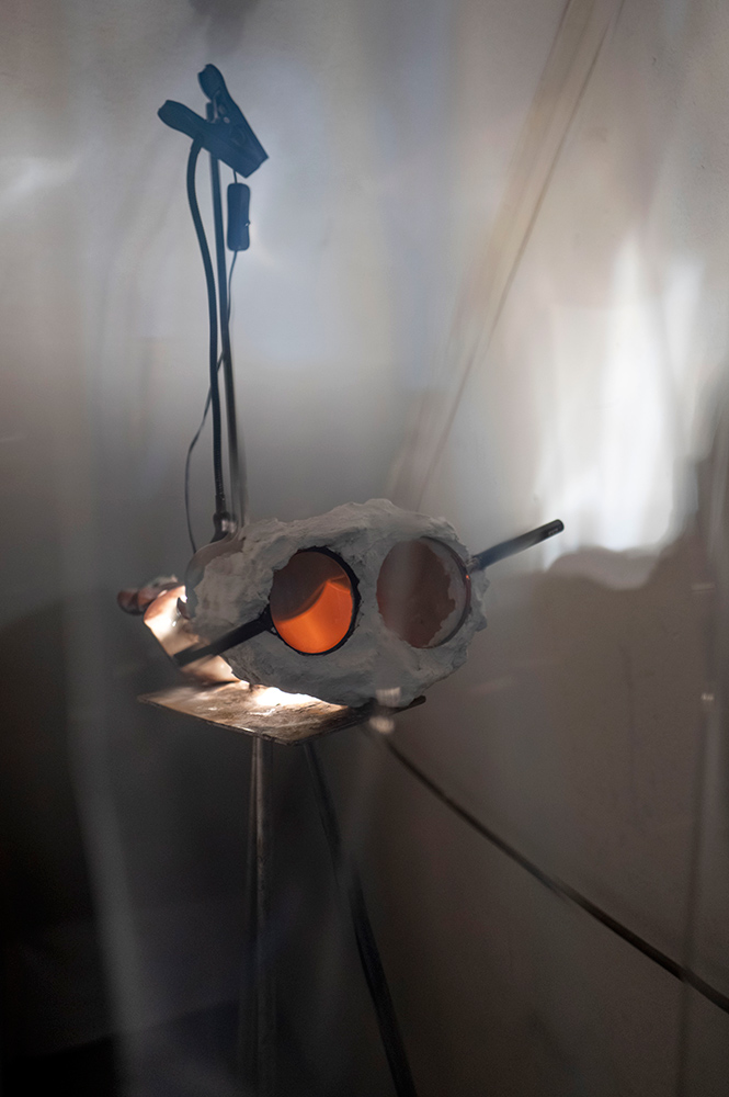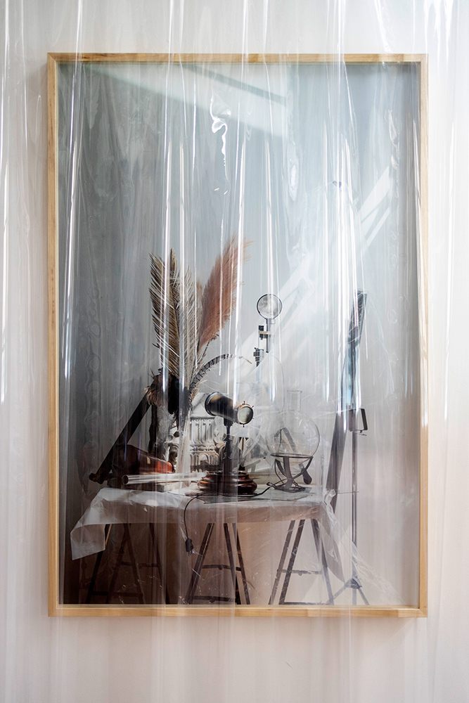 Il risultato visivo è descritto da un carattere di ambivalenza, tra la rappresentazione dell’oggetto e la sua assenza fisica, come due impulsi antitetici che sussistono in un deposito: il nascondere e il ricordare. Questa condizione di presenza-assenza è connotata anche da una selezione di oggetti ottici, legati al tema della visione, provenienti dal deposito del Museo Galileo, che Chiara Bettazzi ha visionato e scelto di esporre mantenendoli ancora avvolti nei loro imballaggi, esattamente come li ha incontrati, nascosti alla vista, con lo scopo di evidenziare ciò che esiste oltre lo sguardo.