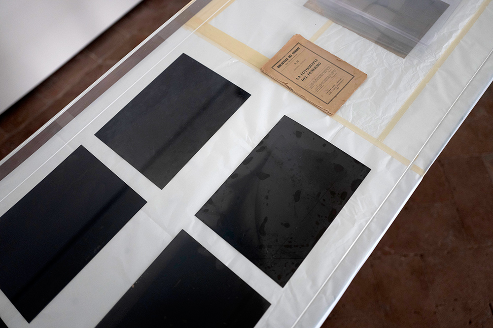 Questo sottolinea un carattere fondamentale della ricerca dell’artista che si avvicina al sentire archeologico, in cui le cose esistono nella loro storia, che deve essere esaltata piuttosto che nascosta, in un presente stratificato dal tempo in cui ogni strato è parte di un processo che lo ha portato ad esistere nella propria condizione odierna. Tale ricerca nei depositi ha permesso di riscontrare pratiche analoghe tra le necessità documentative e operative che compaiono nel lavoro dell’artista e quelle utilizzate dalle due istituzioni culturali.