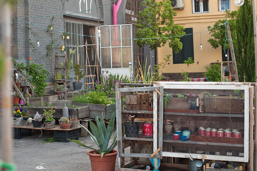 E’ un giardino/orto ispirato agli orti operai che venivano costruiti nei terreni attigui alle fabbriche fin dal 1800. E’ un lavoro costantemente in progress che mostra continuamente delle trasformazioni e dei nuovi inserimenti. Il presidio verde, è formato da piante spontanee, ortaggi e piante di varia natura, inserite all’interno di casse da filato provenienti dalle fabbriche del territorio.