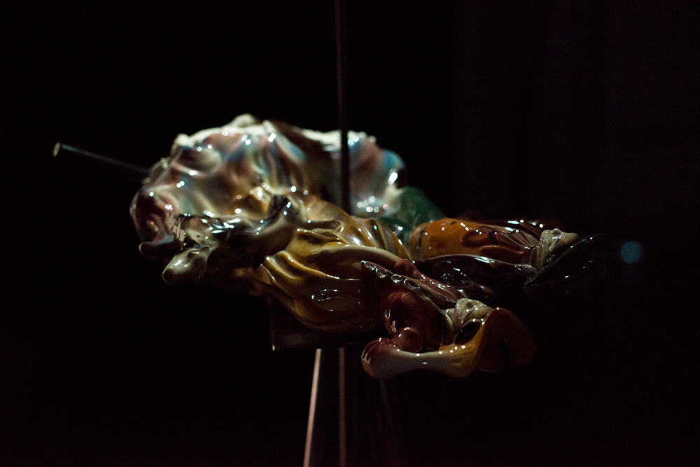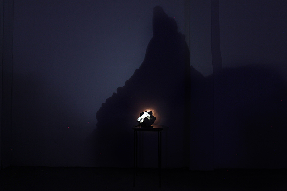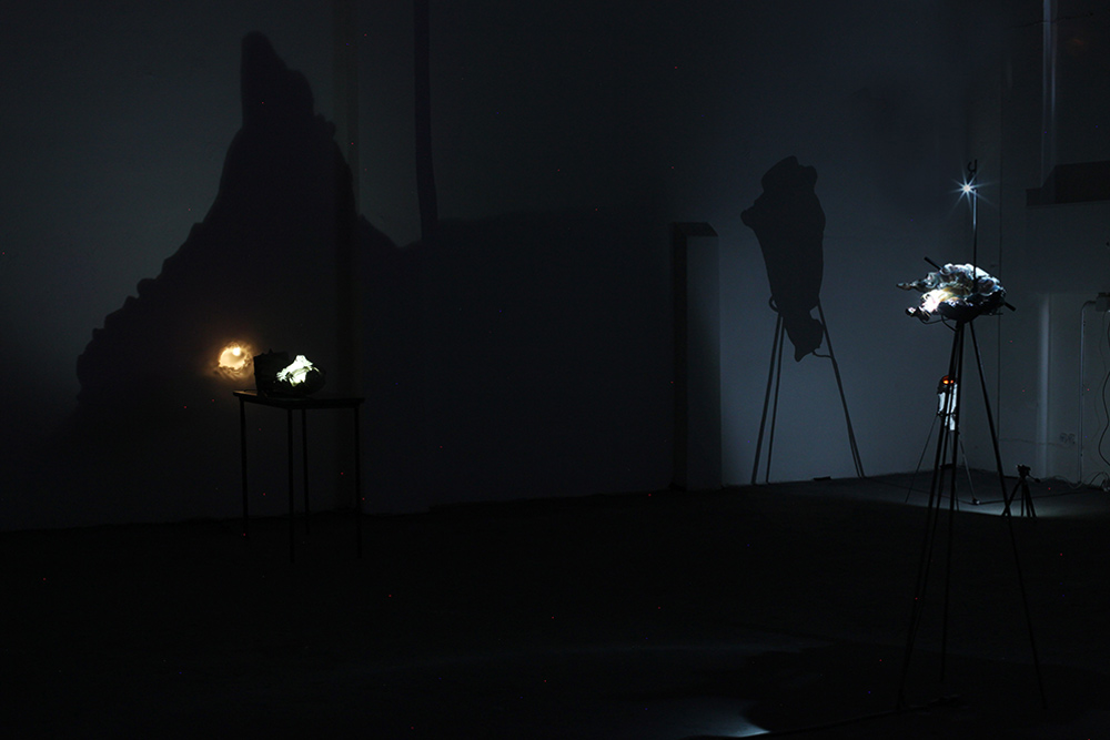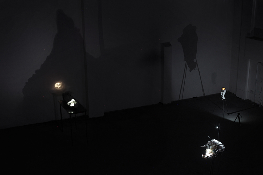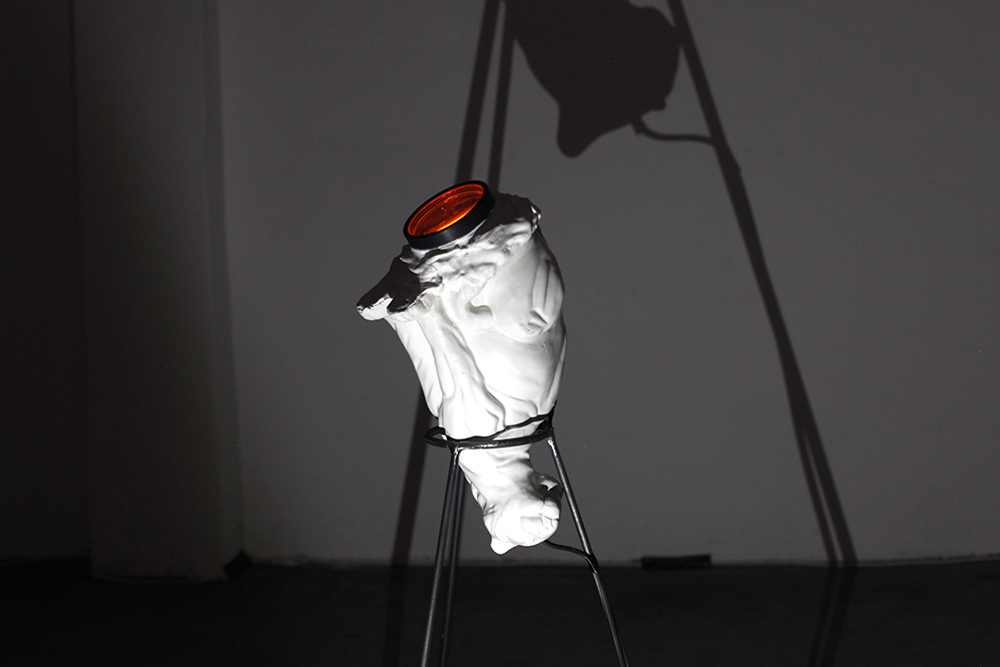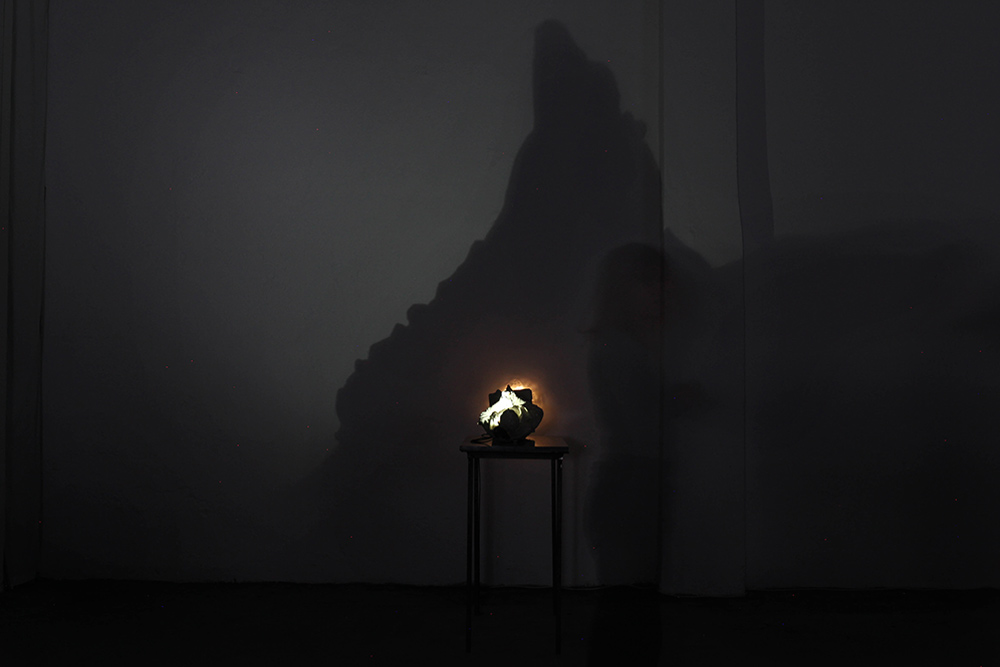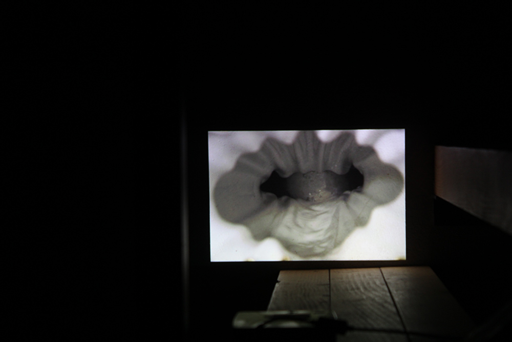 Chiara Bettazzi ha puntato l’attenzione sull’assemblaggio di oggetti che manifestano un binomio organico/inorganico, mettendo in evidenza la superficie interna di oggetti in gesso e ceramica provenienti dal suo studio. Entrambe sono partite dal mito della Caverna di Platone, giocando con cavità attraverso luci e ombre, arrivando alla scoperta delle cose che ci circondano e degli oggetti intorno a noi, non tramite la ragione ma la percezione.